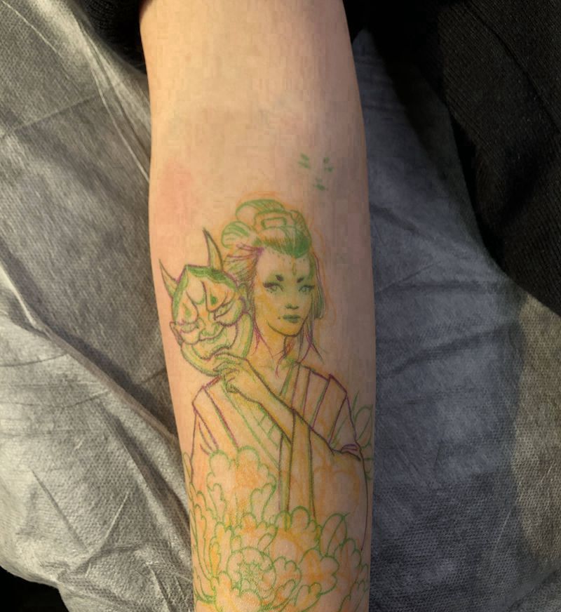 纯手绘艺伎纹身图片_手臂新传统纹身图案
