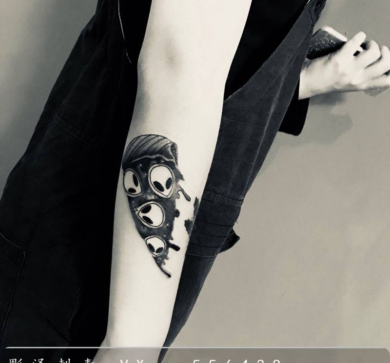 当前位置: 首页 >河北省唐山市纹身店-彫泽刺青纹身图案>外星人披萨纹身图片_手臂New School纹身图案