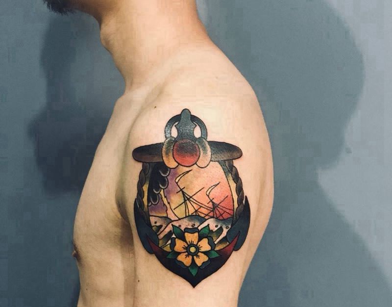当前位置: 首页 >河北省唐山市纹身店-彫泽刺青纹身图案>船锚纹身图片_手臂Old School纹身图案