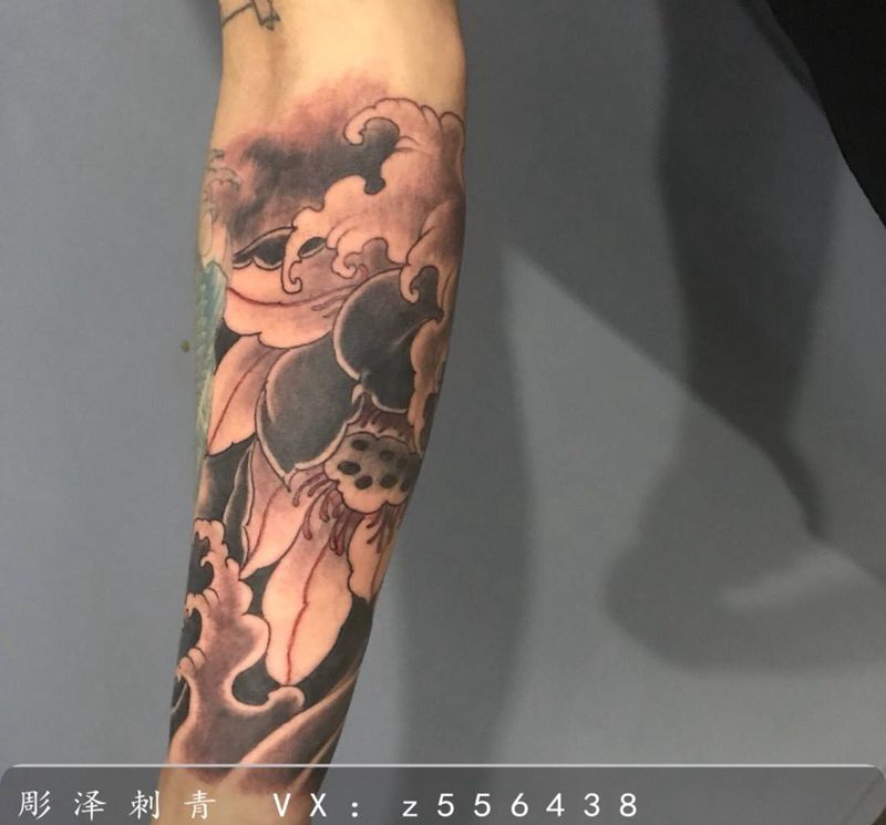 当前位置: 首页 >河北省唐山市纹身店-彫泽刺青纹身图案>小臂荷花纹身图片_手臂新传统纹身图案