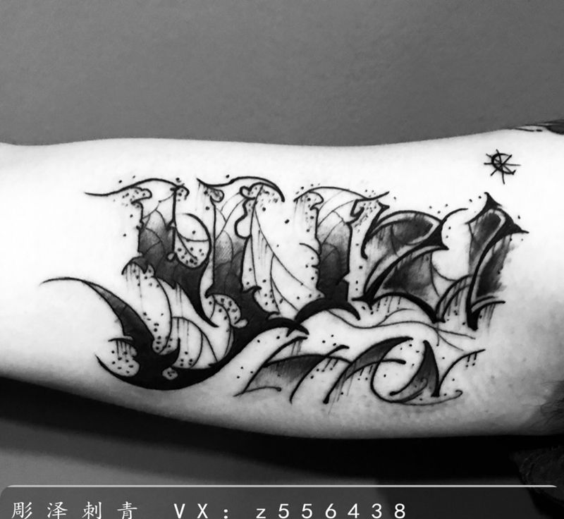 当前位置: 首页 >河北省唐山市纹身店-彫泽刺青纹身图案>花字体纹身图片_手臂花体字纹身图案