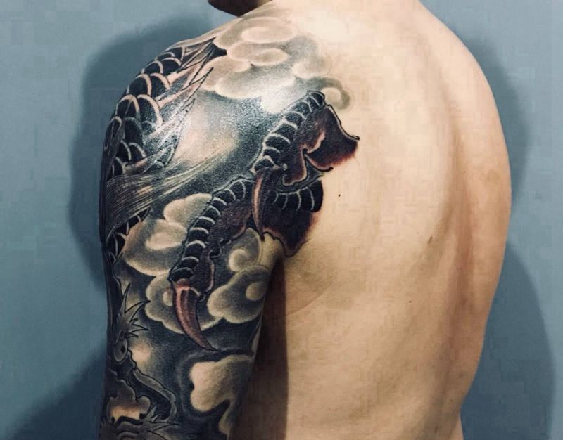 当前位置: 首页 >河北省唐山市纹身店-彫泽刺青纹身图案>龙遮盖纹身图片_手臂纹身图案
