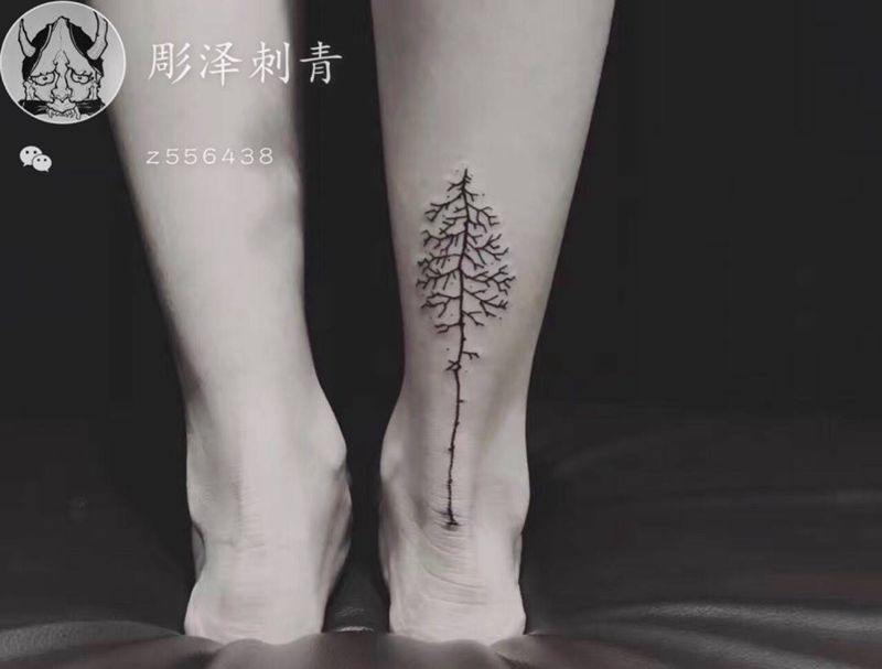 小树纹身图片_腿部几何纹身图案