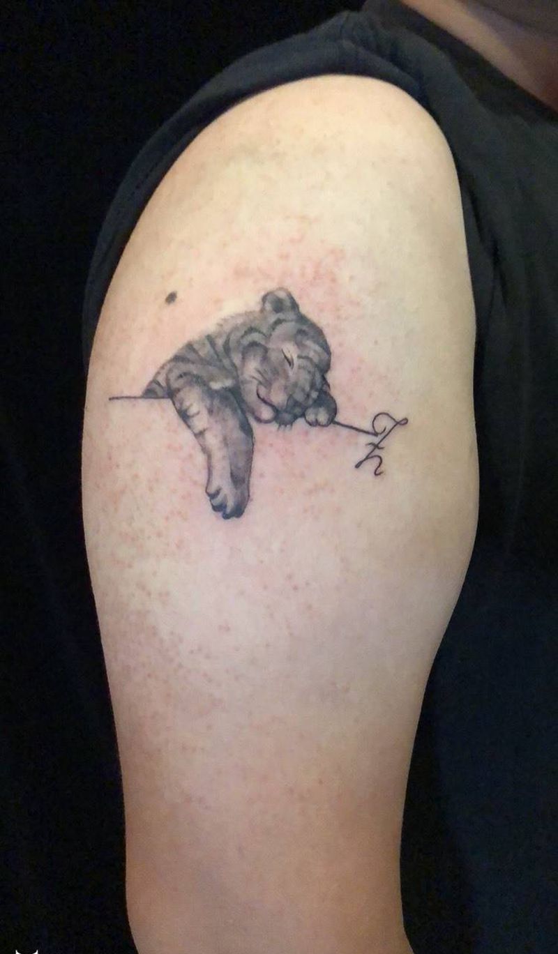当前位置: 首页 >河北省石家庄市纹身店-Iverson纹身图案>打盹儿的小老虎纹身图片