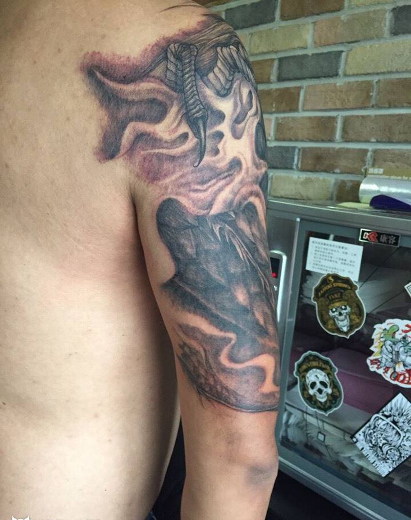• 纹身吧推荐的披肩图腾半胛纹身图案作品展示