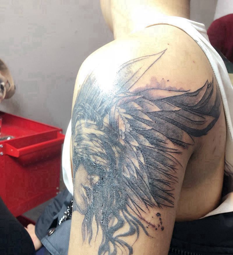 当前位置: 首页 >河北省石家庄市纹身店-Iverson纹身图案>遮盖女人翅膀纹身图片