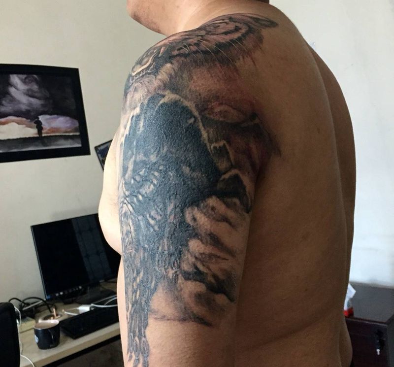 • 纹身吧推荐的披肩图腾半胛纹身图案作品展示