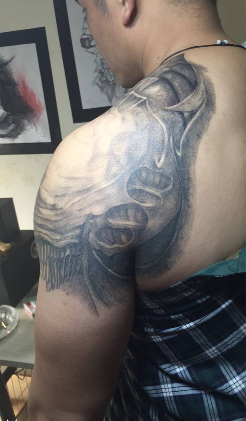 • 纹身吧推荐的披肩图腾半胛纹身图案作品展示