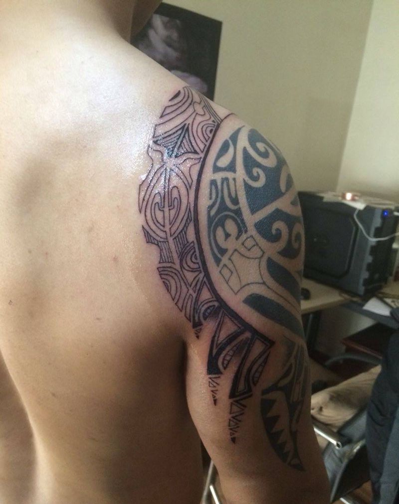 • 纹身吧推荐的披肩图腾半胛纹身图案作品展示