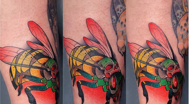 当前位置: 首页 >河北省唐山市纹身店-云顶刺青纹身图案>蜜蜂纹身图片_腿部New School蜜蜂纹身图案