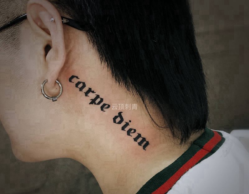 哥特字体纹身图片_颈部图腾英文字体纹身图案