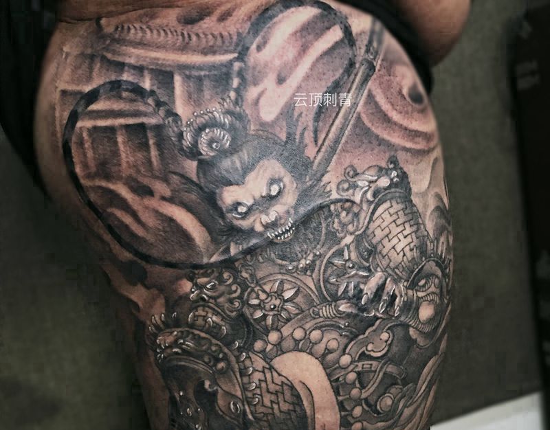 斗战胜佛纹身图片_腿部新传统斗战胜佛纹身图案