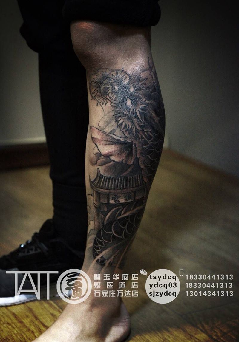 • T网红王老大花腿龙纹身图片_腿部新传统纹身图案