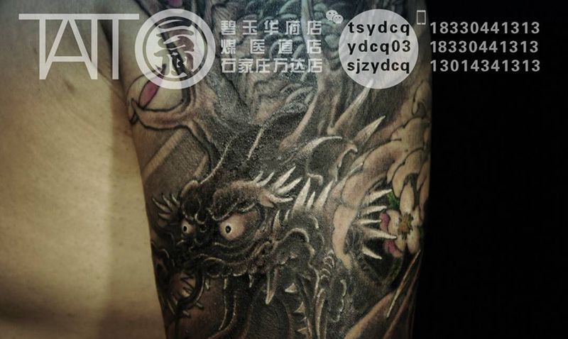 当前位置: 首页 >河北省唐山市纹身店-云顶刺青纹身图案>大臂龙 覆盖老纹身纹身图片