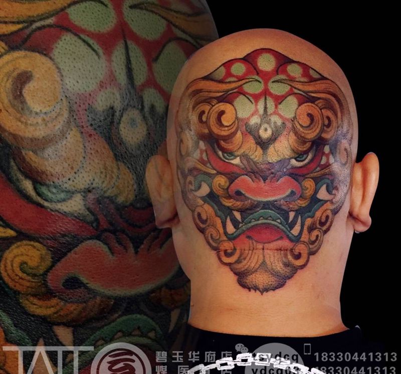 当前位置: 首页 >河北省唐山市纹身店-云顶刺青纹身图案>头部唐狮子纹身图片
