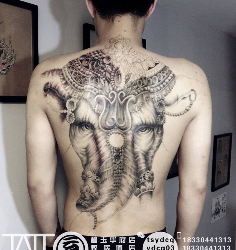 满背象神 未完成纹身图片