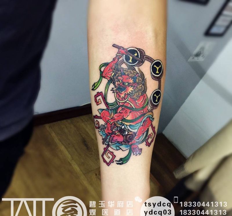 当前位置: 首页 >河北省唐山市纹身店-云顶刺青纹身图案>雷神纹身图片_成品手臂传统人物宗教鬼神纹身图案