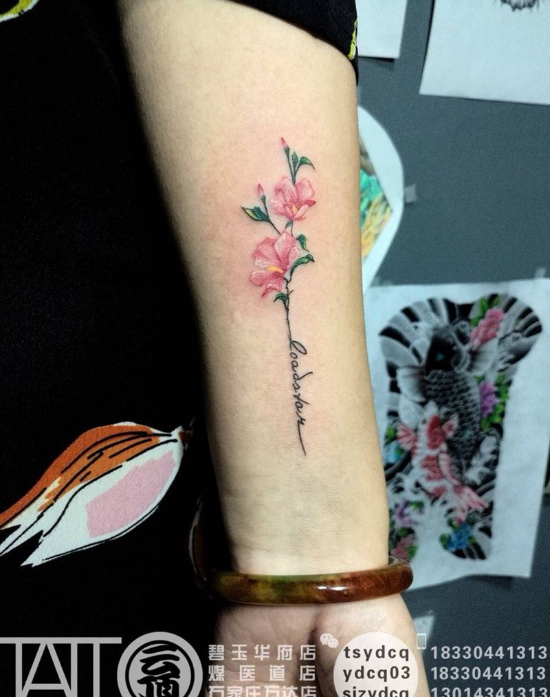 花体字&手写体纹身图片_成品手臂欧美字符植物纹身图案