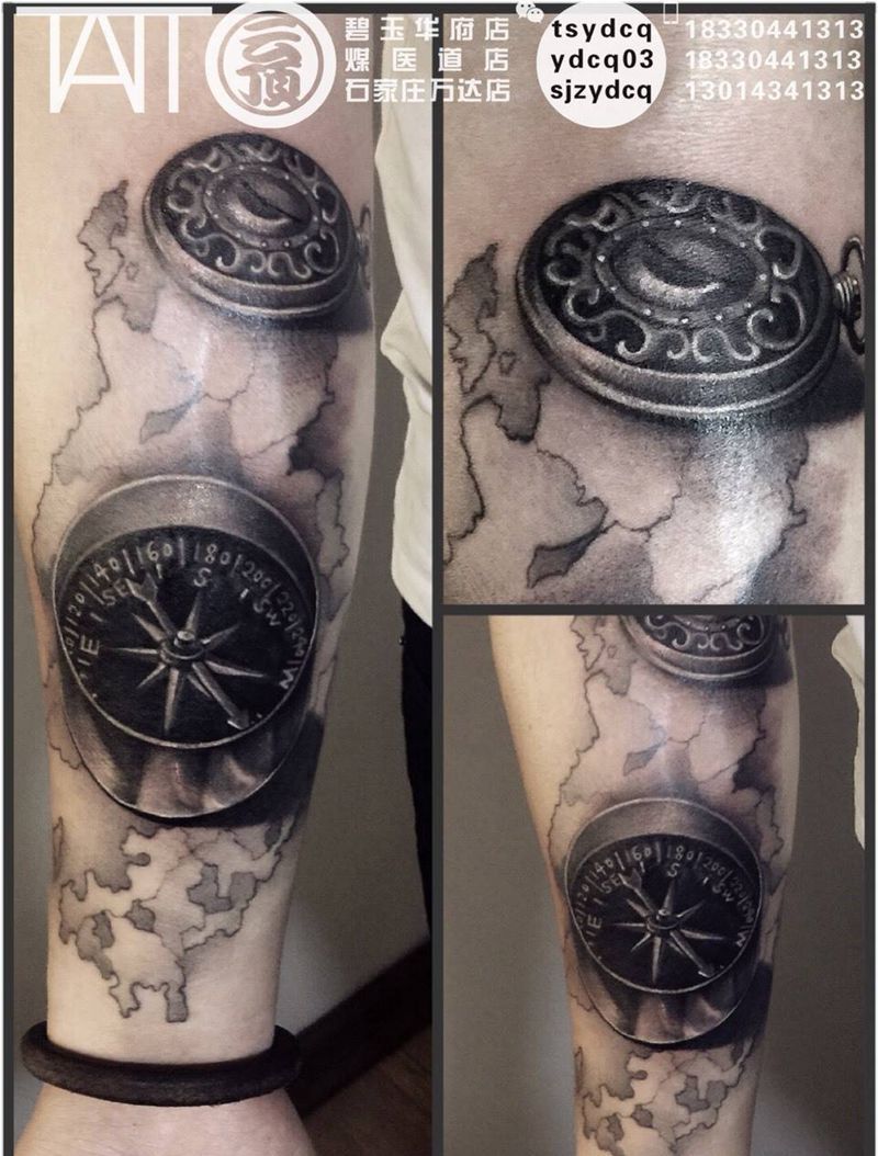 当前位置: 首页 >河北省唐山市纹身店-云顶刺青纹身图案>指南针纹身图片_成品手臂写实欧美静物原创纹身图案