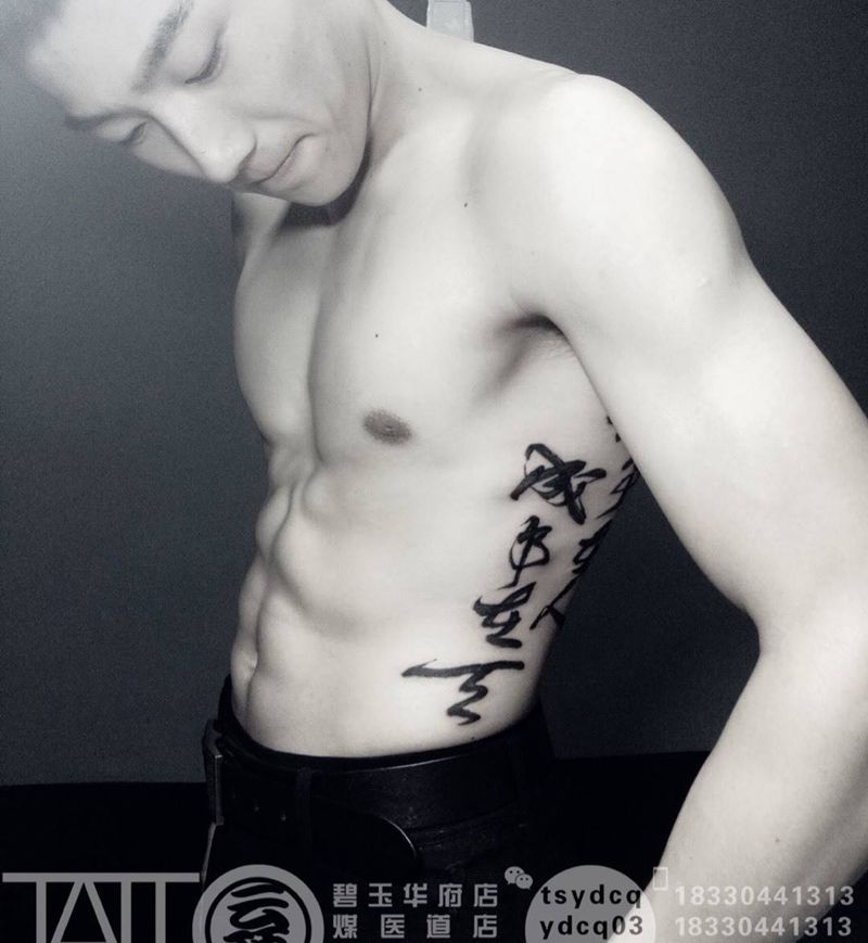 中文书法字体纹身图片_成品腰部传统写实国画字符原创图腾纹身图案