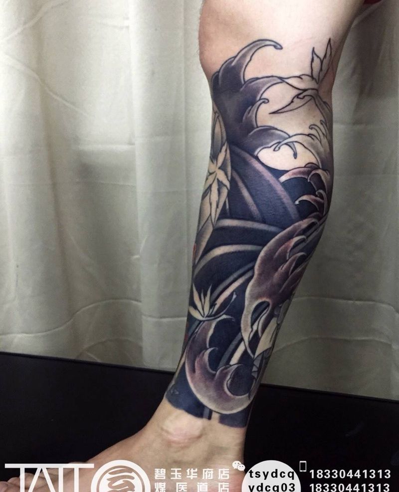 • T网红王老大花腿龙纹身图片_腿部新传统纹身图案