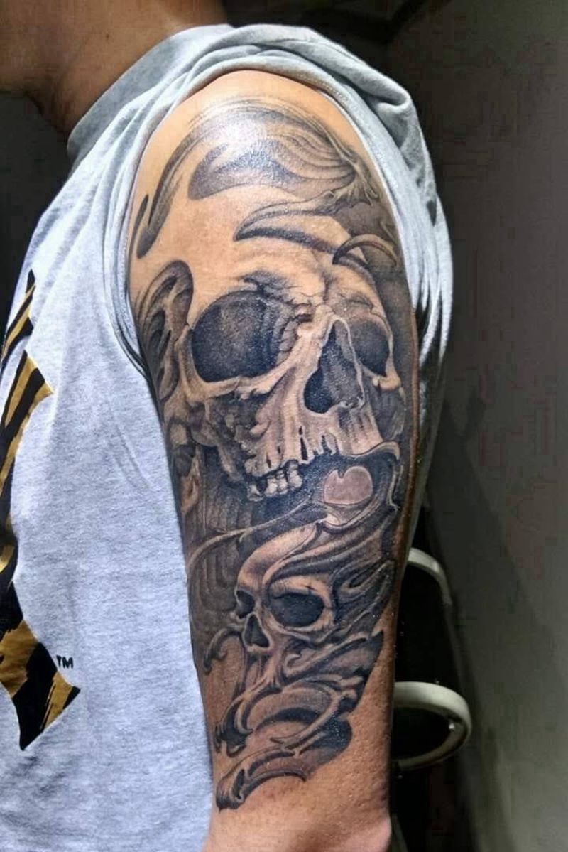 写实骷髅纹身图片_成品手臂欧美鬼神宗教原创纹身图案