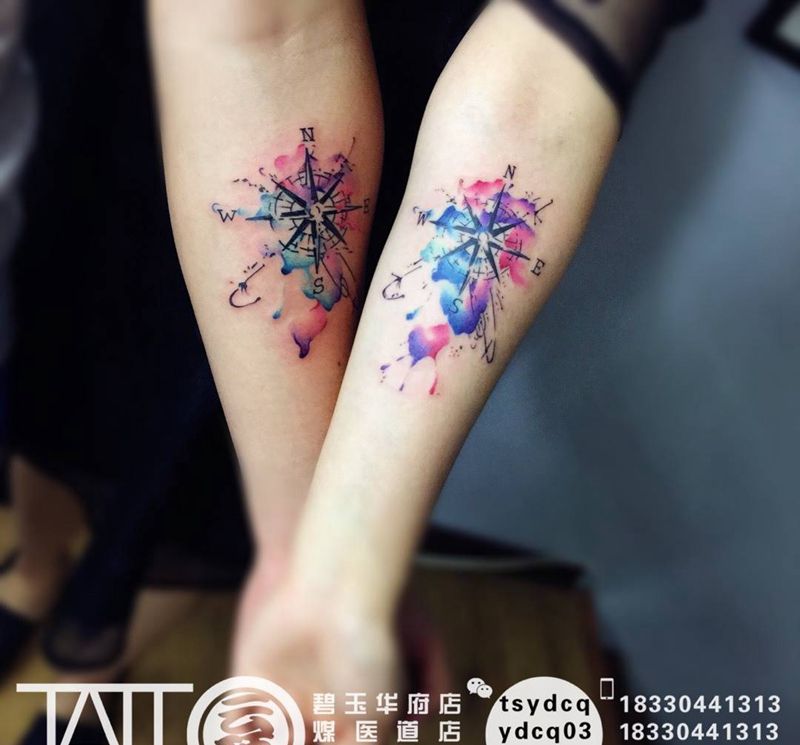 当前位置: 首页 >河北省唐山市纹身店-云顶刺青纹身图案>情侣款 指南针纹身图片_成品手臂欧美静物原创纹身图案