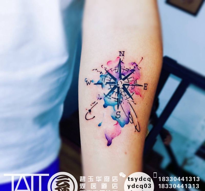 情侣款 指南针纹身图片_成品手臂欧美静物原创纹身图案