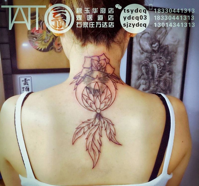 当前位置: 首页 >河北省唐山市纹身店-云顶刺青纹身图案>捕梦网遮盖老纹身纹身图片_成品颈部欧美习俗静物植物原创纹身图案