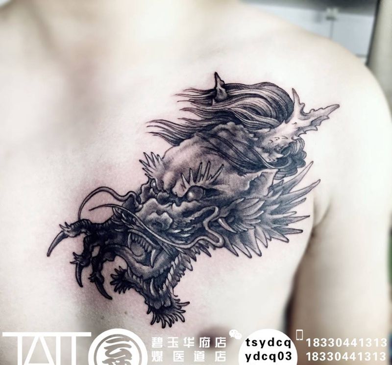 龙头纹身图片_成品胸部传统宗教原创动物纹身图案