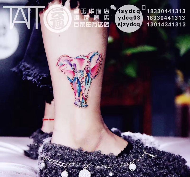 一组水彩泼墨小象纹身图片_成品手臂腿部欧美动物原创纹身图案