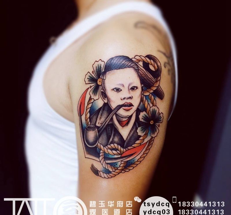 当前位置: 首页 >河北省唐山市纹身店-云顶刺青纹身图案>old school纹身图片_成品手臂欧美肖像原创人物纹身图案