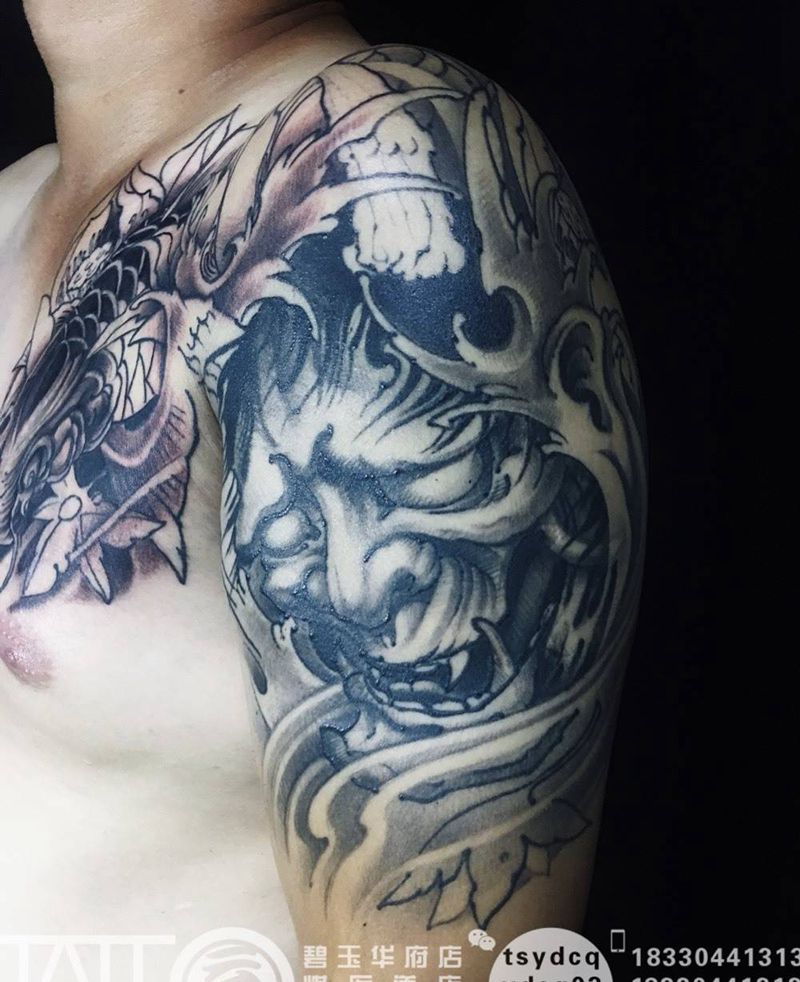 • 纹身吧推荐的披肩图腾半胛纹身图案作品展示