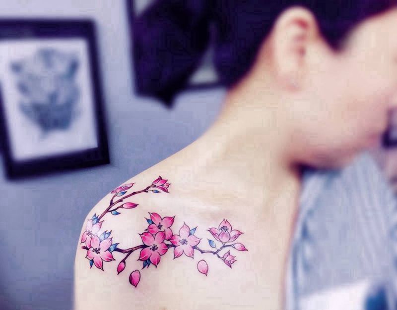 当前位置: 首页 >河北省唐山市纹身店-云顶刺青纹身图案>肩头一支樱花
