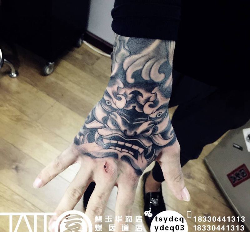 手面纹身图片_成品手部传统原创鬼神动物纹身图案