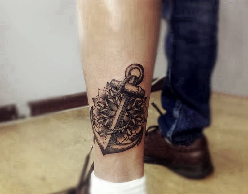 船锚⚓️纹身图片_成品腿部欧美原创静物纹身图案