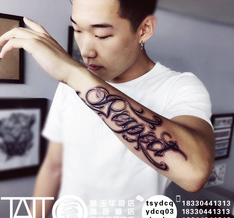 花体字纹身图片_成品手臂欧美字符原创图腾纹身图案