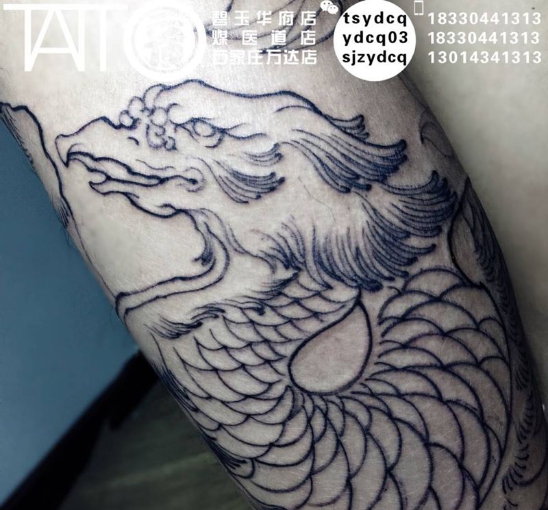 • T网红王老大花腿龙纹身图片_腿部新传统纹身图案