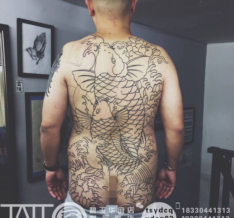 老传统鱼 未完待续纹身图片_成品背部传统动物原创纹身图案