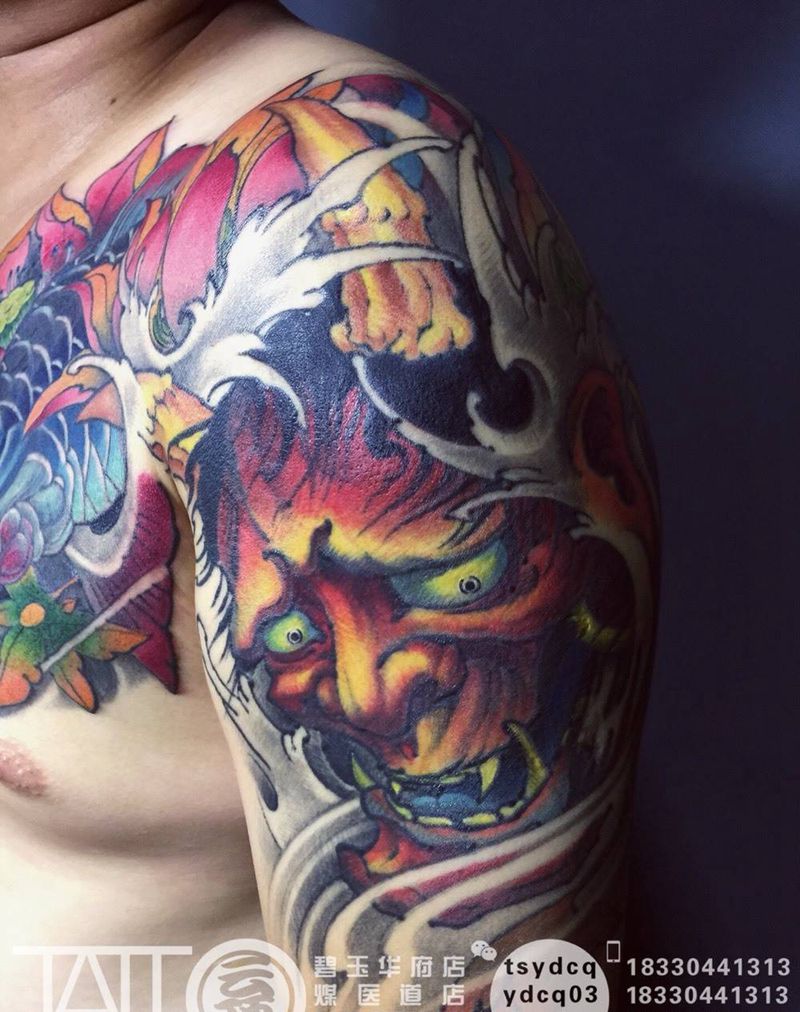 般若 鱼 半胛纹身图片_成品手臂胸部传统动物鬼神人物宗教原创纹身图案