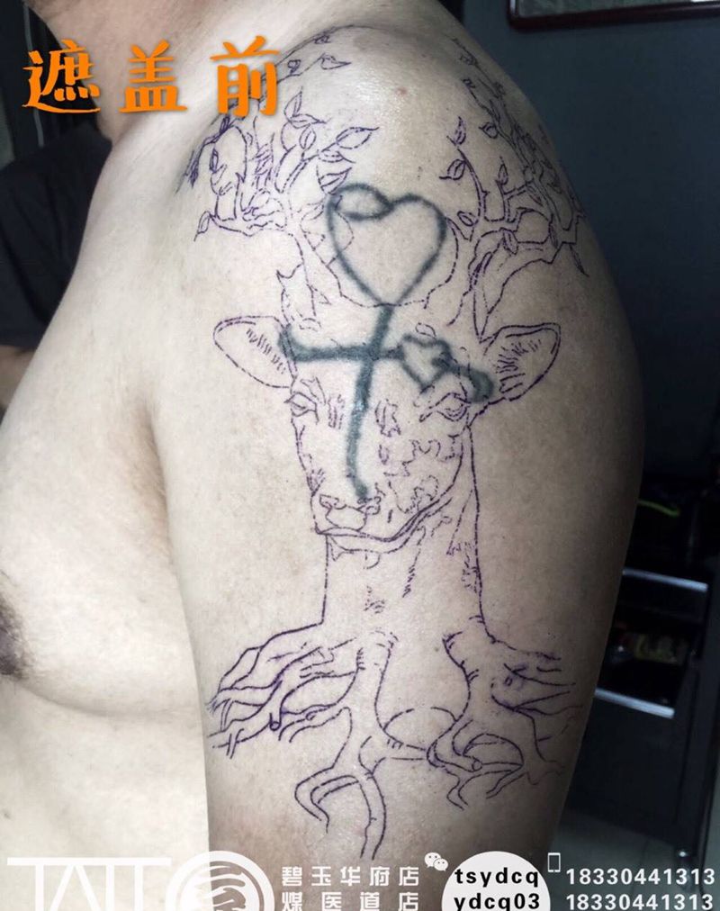 鹿 完美覆盖老纹身纹身图片_成品手臂欧美动物原创纹身图案