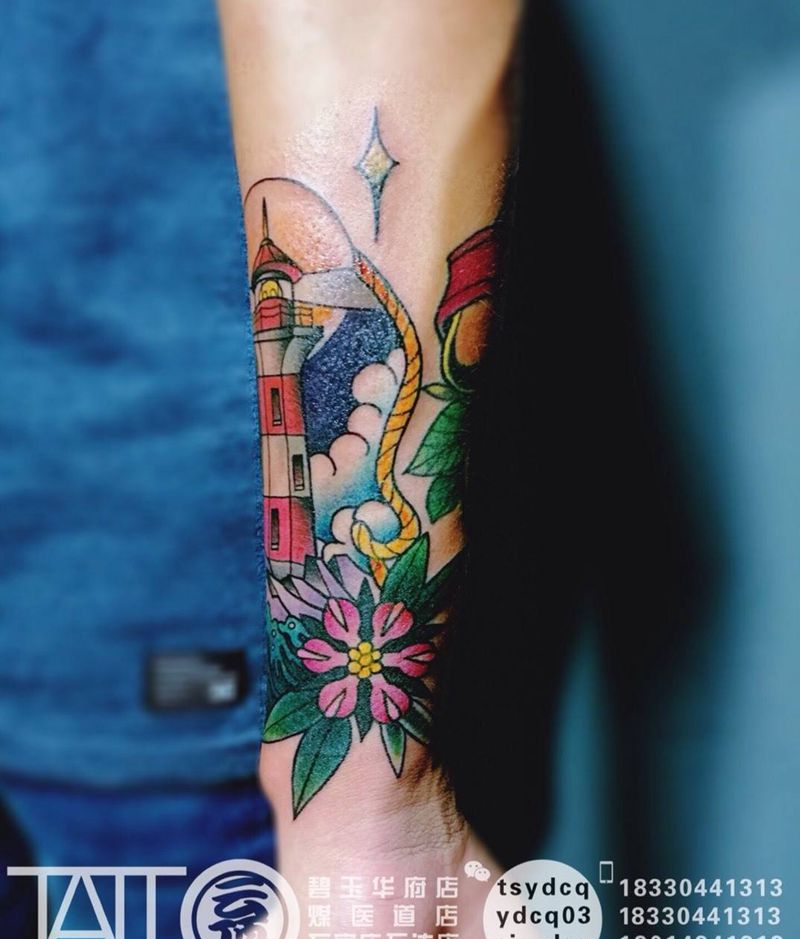 当前位置: 首页 >河北省唐山市纹身店-云顶刺青纹身图案>old school灯塔纹身图片_成品手臂欧美静物原创植物纹身图案