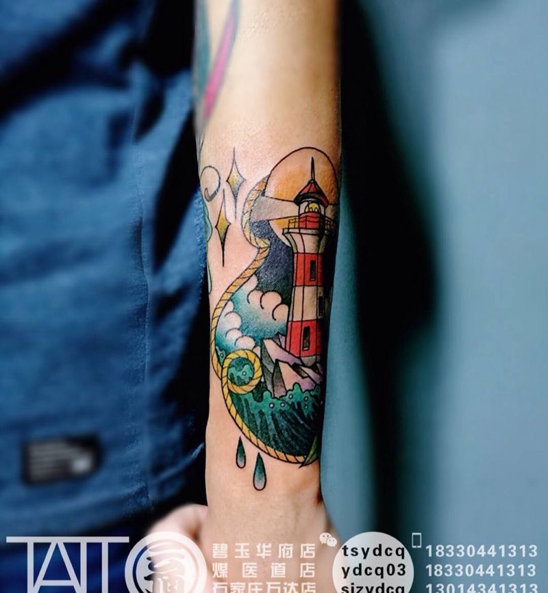 当前位置: 首页 >河北省唐山市纹身店-云顶刺青纹身图案>old school灯塔纹身图片_成品手臂欧美静物原创植物纹身图案