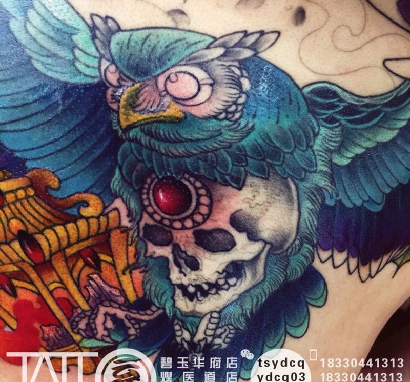 当前位置: 首页 >河北省唐山市纹身店-云顶刺青纹身图案>school 猫头鹰纹身图片_成品背部欧美动物原创植物静物纹身图案