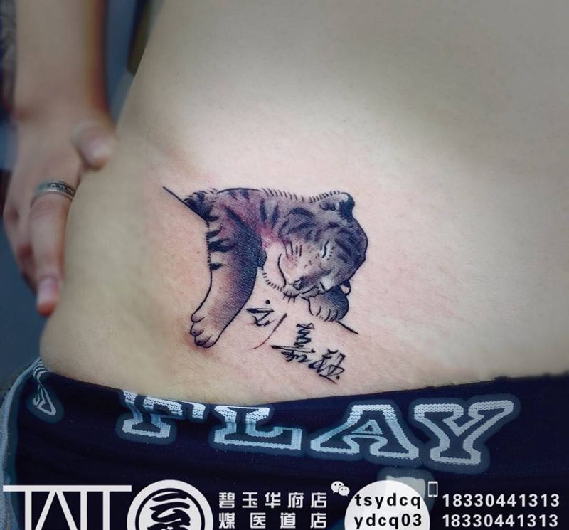 当前位置: 首页 >河北省唐山市纹身店-云顶刺青纹身图案>熟睡的小老虎纹身图片_成品腹部欧美清新动物原创纹身图案