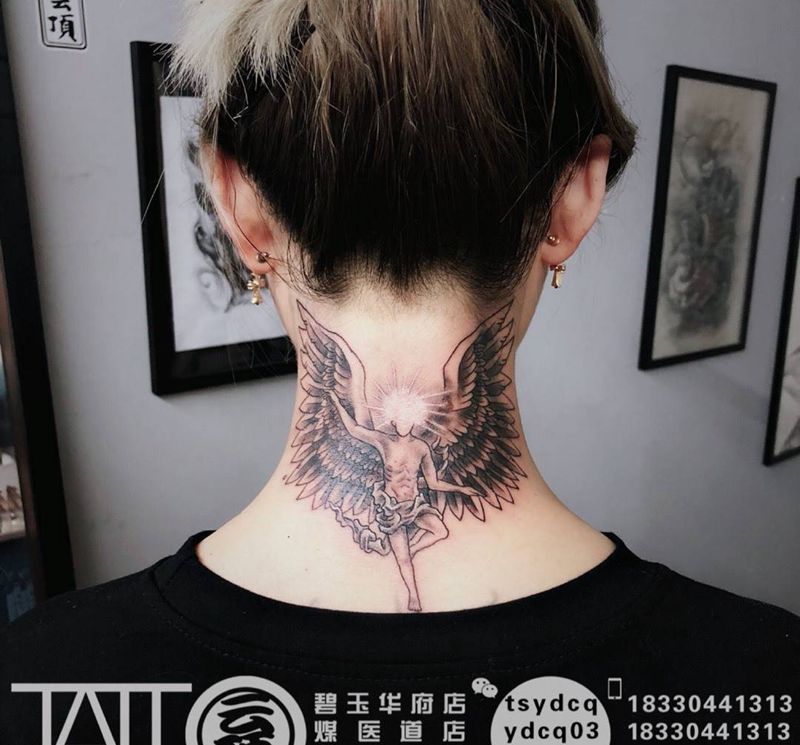 权志龙同款 天使纹身图片_成品颈部欧美习俗原创鬼神宗教纹身图案