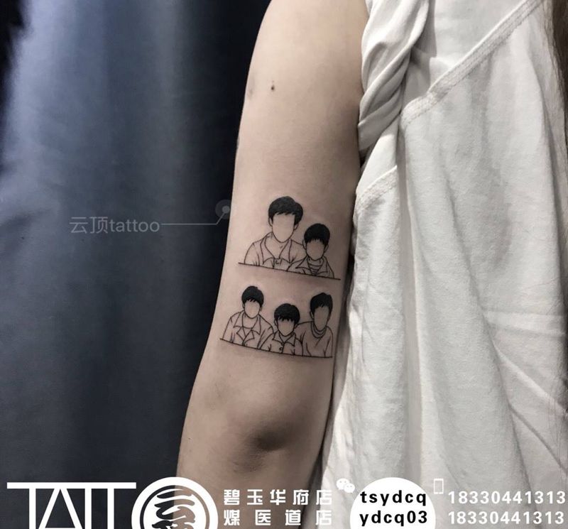 当前位置: 首页 >河北省唐山市纹身店-云顶刺青纹身图案>极简画风 表现一家人纹身图片_成品手臂欧美清新肖像人物原创纹身图案