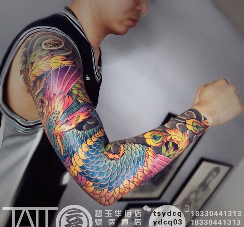 凤凰 花臂纹身图片_成品手臂传统习俗宗教鬼神动物原创纹身图案