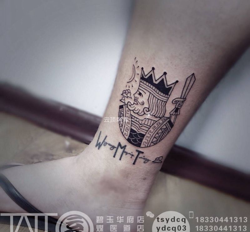 poker face纹身图片_成品腿部欧美清新原创人物情侣纹身图案