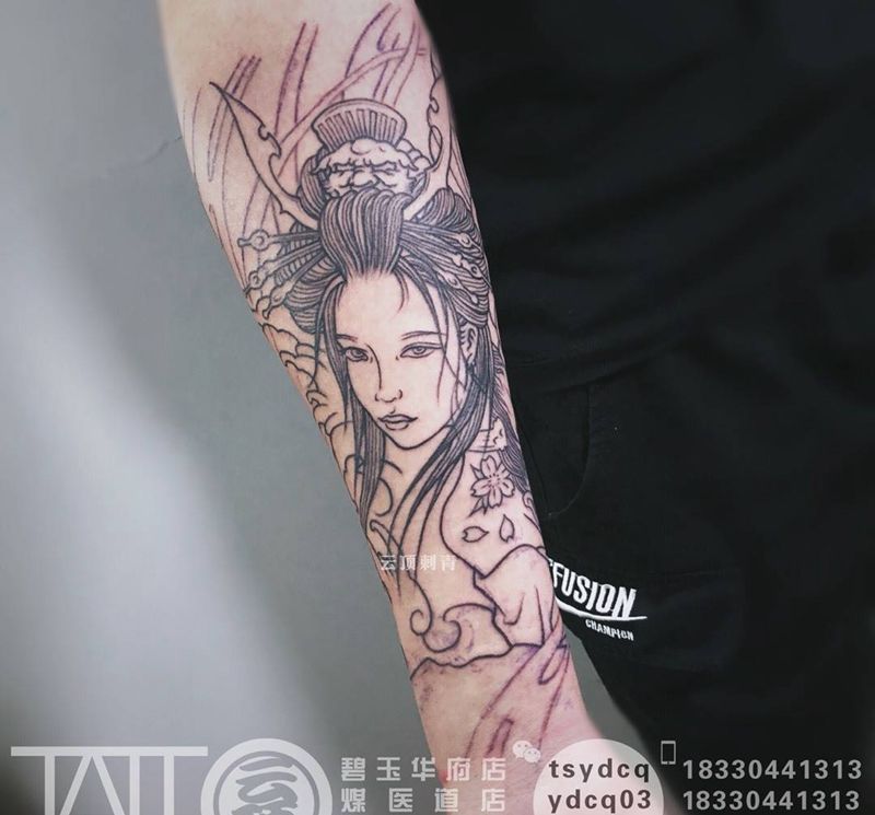 艺妓纹身图片_成品手臂传统人物原创纹身图案